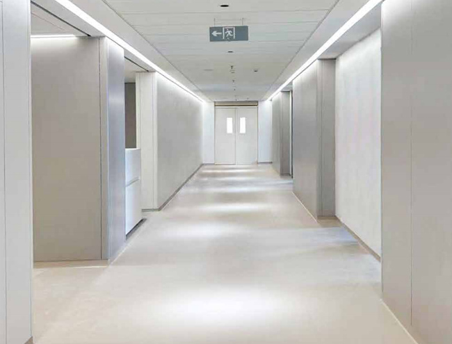 • 福爾卡?醫(yī)耐板?(玻纖復(fù)合不燃板)是由耐磨層、裝飾層、玻璃纖維層、硅酸鈣、石英砂(不含石棉)和平衡紙,表面經(jīng)過(guò)三聚氰胺樹(shù)脂與特種改性樹(shù)脂浸漬層疊后高溫高壓而成,產(chǎn)品的密度不低于1650KG/m3,厚度從4mm 到12mm,形成了整體A級(jí)防火、密度高、硬度高、表面毛孔很小的纖維板。
